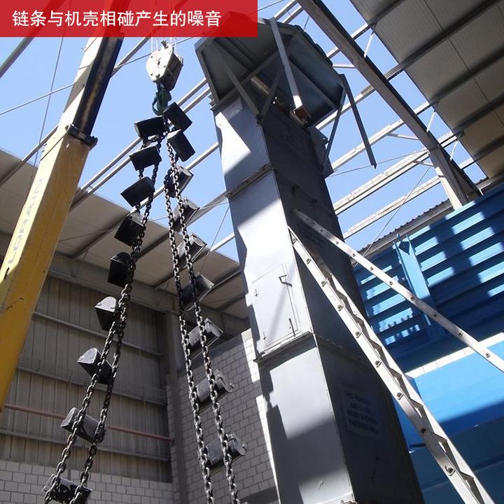 斗式提升機在長期不停歇的工作后,傳動軸、從動軸松弛,鏈輪會發(fā)生位移,使鏈條左右晃動,與會機殼碰撞發(fā)出噪音。解決辦法就是調整鏈輪位置,把鍵裝緊。