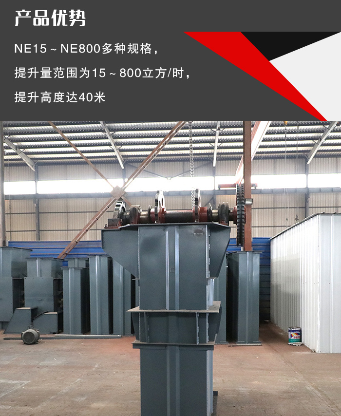 8.操作方便,維修少,易損件少。輸送鏈為套筒滾子鏈,誘導(dǎo)式重力卸料,用于各種粉狀、塊狀物料的垂直提升。